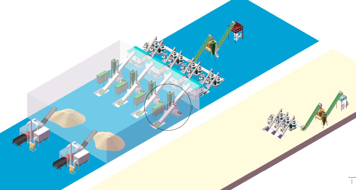 一條完整的顆粒生產線下來的話有下面幾個流程,以木屑顆粒為例: